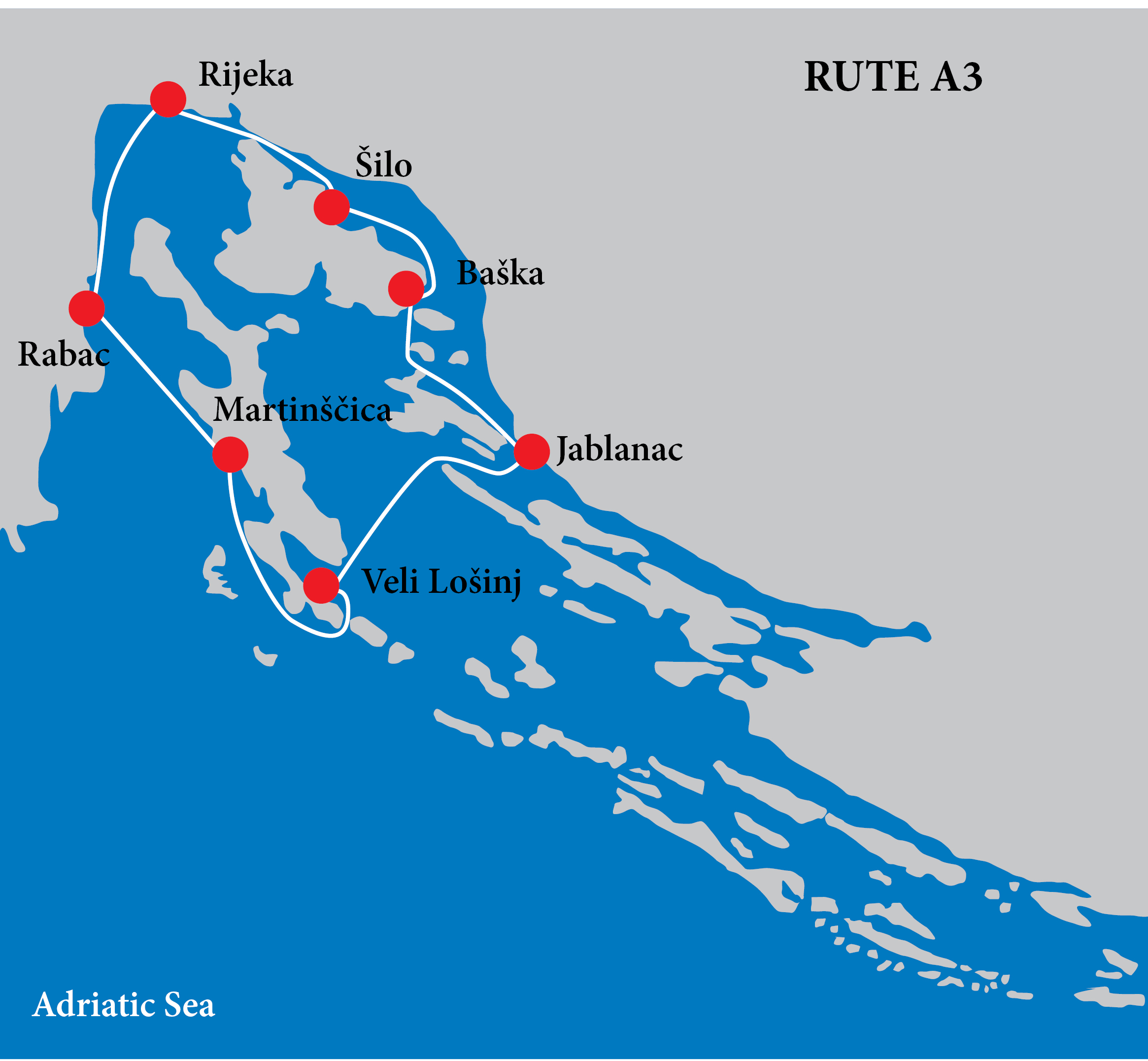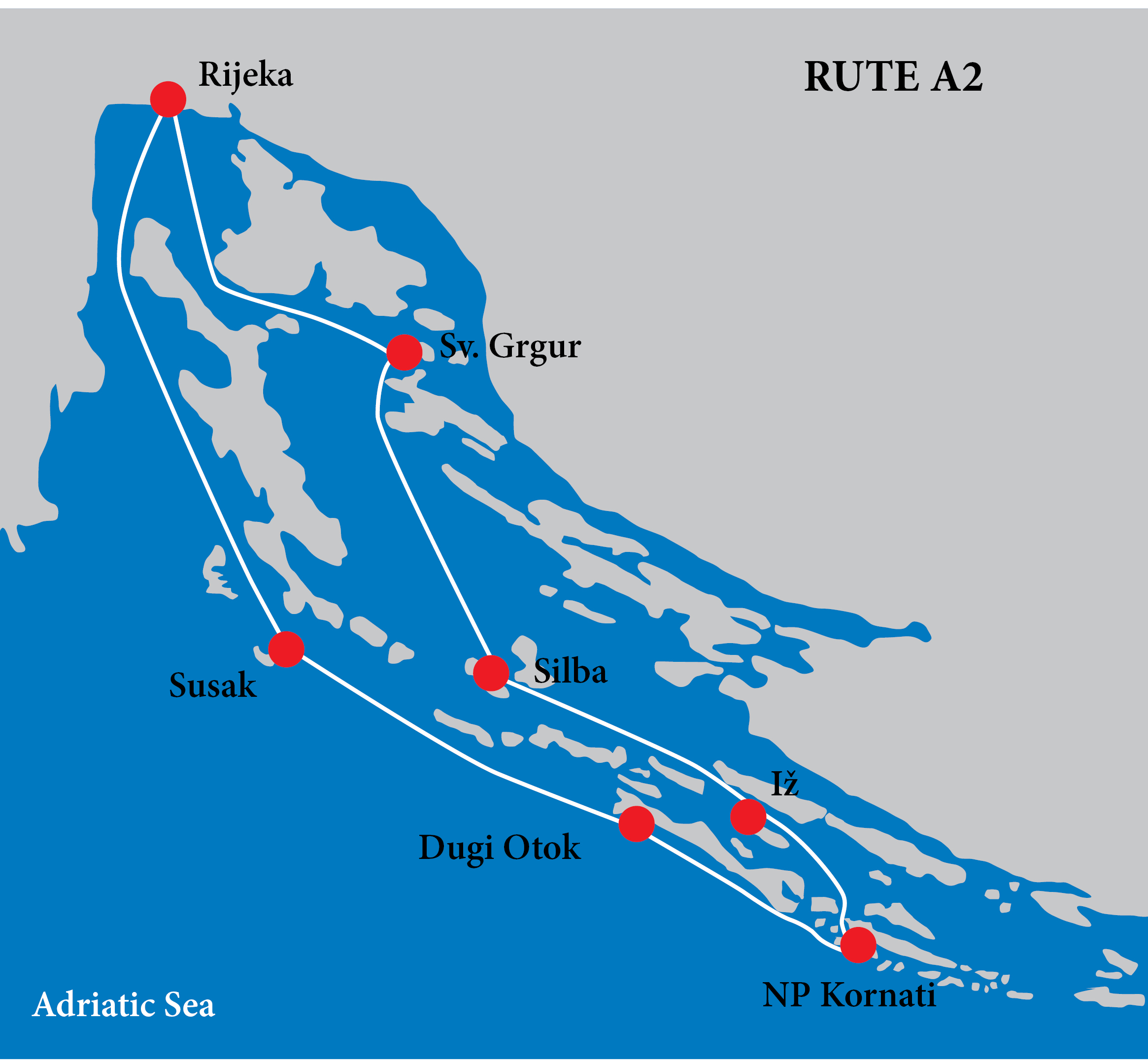 Ruta A1 - tura koja obuhvaća gradove Sjevernojadranskih otoka. Svaku noć spavamo vezani u lukama što gostu omogučuje da istraži destinaciju