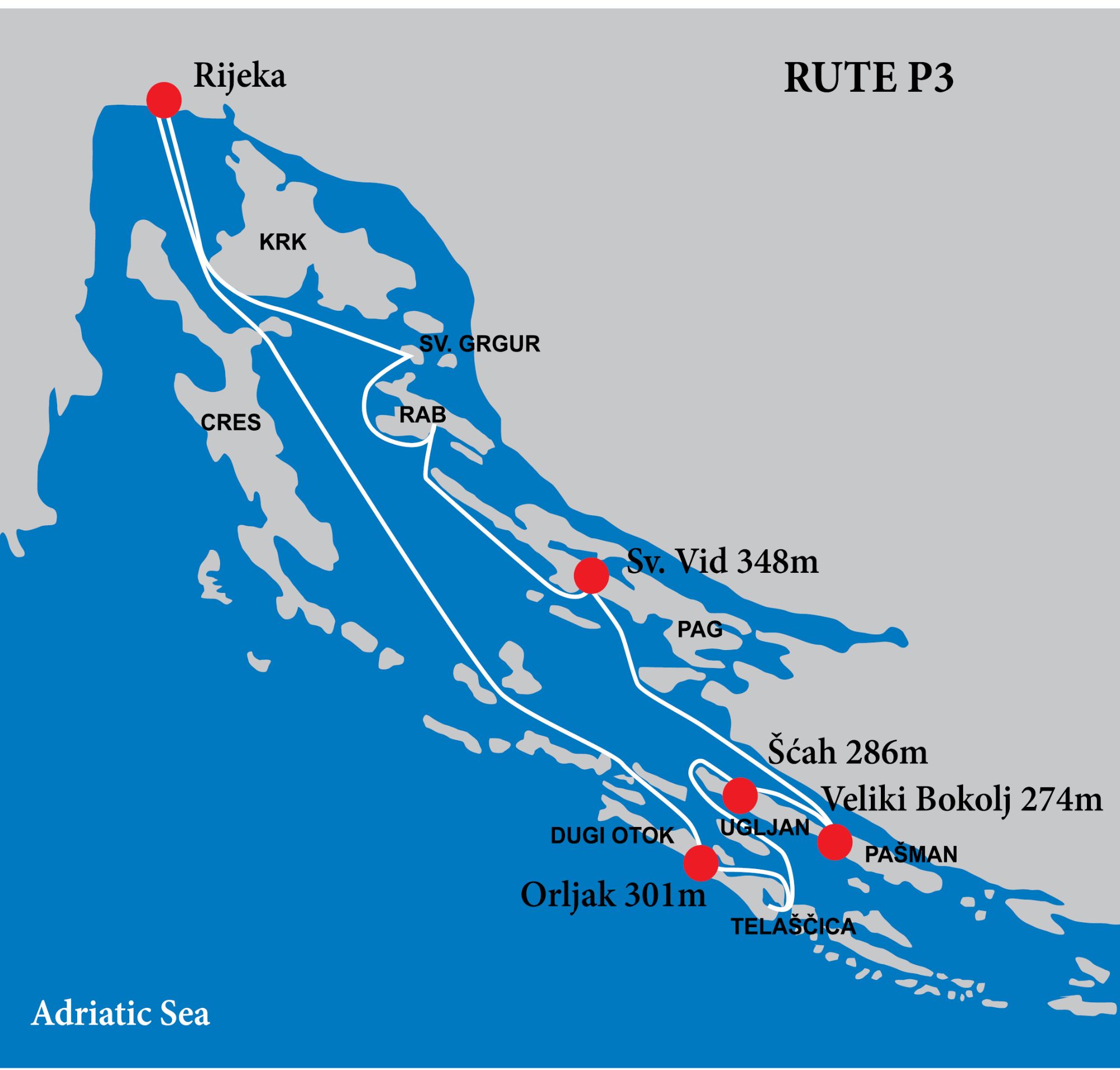 | Ponedjeljak | Telaščica - Pašman (Veliki Bokolj 274 m) |
